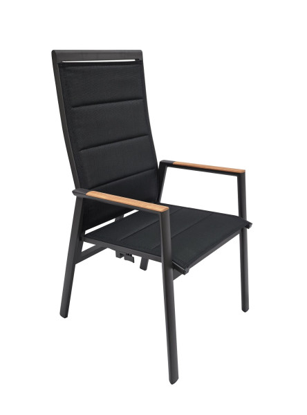 Aluminium anthrazit gepolstertes Textilene dunkelgrau 66x62x95 cm Teakeinsätzen an den Armlehnen